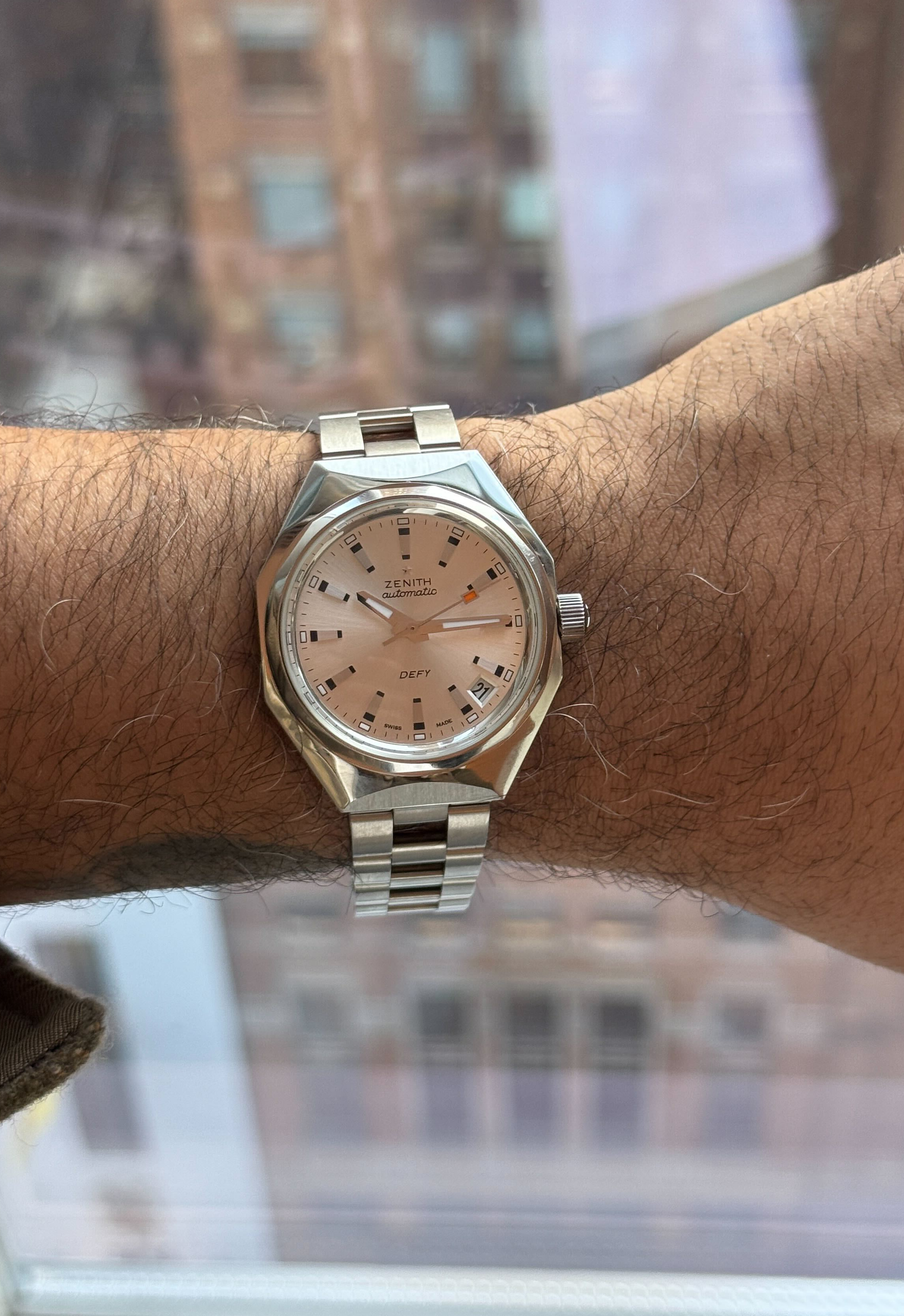 In person, the broader Defy lineup reinforces the same point. The Defy Revival A3643 pulls directly from Zenith’s late-’60s design language, all sharp geometry and bank-vault solidity, while the Defy Skyline Tourbillon Skeleton pushes visibility and precious metal without losing coherence. Across the range, Zenith isn’t trying to convince anyone. It’s building a world and trusting people to meet it where it is.