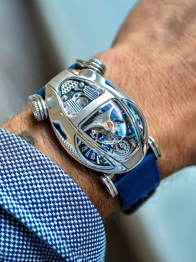 The earliest Horological Machines made that philosophy impossible to miss. Pieces like the HM1 and later the HM4 Thunderbolt rejected the idea of a discreet wristwatch altogether, replacing it with sculptural cases, exposed movements, and designs inspired by aviation, science fiction, animals, and architecture. The HM10 Bulldog went further, turning the watch into a mechanical character, complete with domed sapphire eyes and a power reserve indicator that literally opens and closes its mouth. These were not watches trying to impress quietly. They wanted interaction. They wanted reaction.