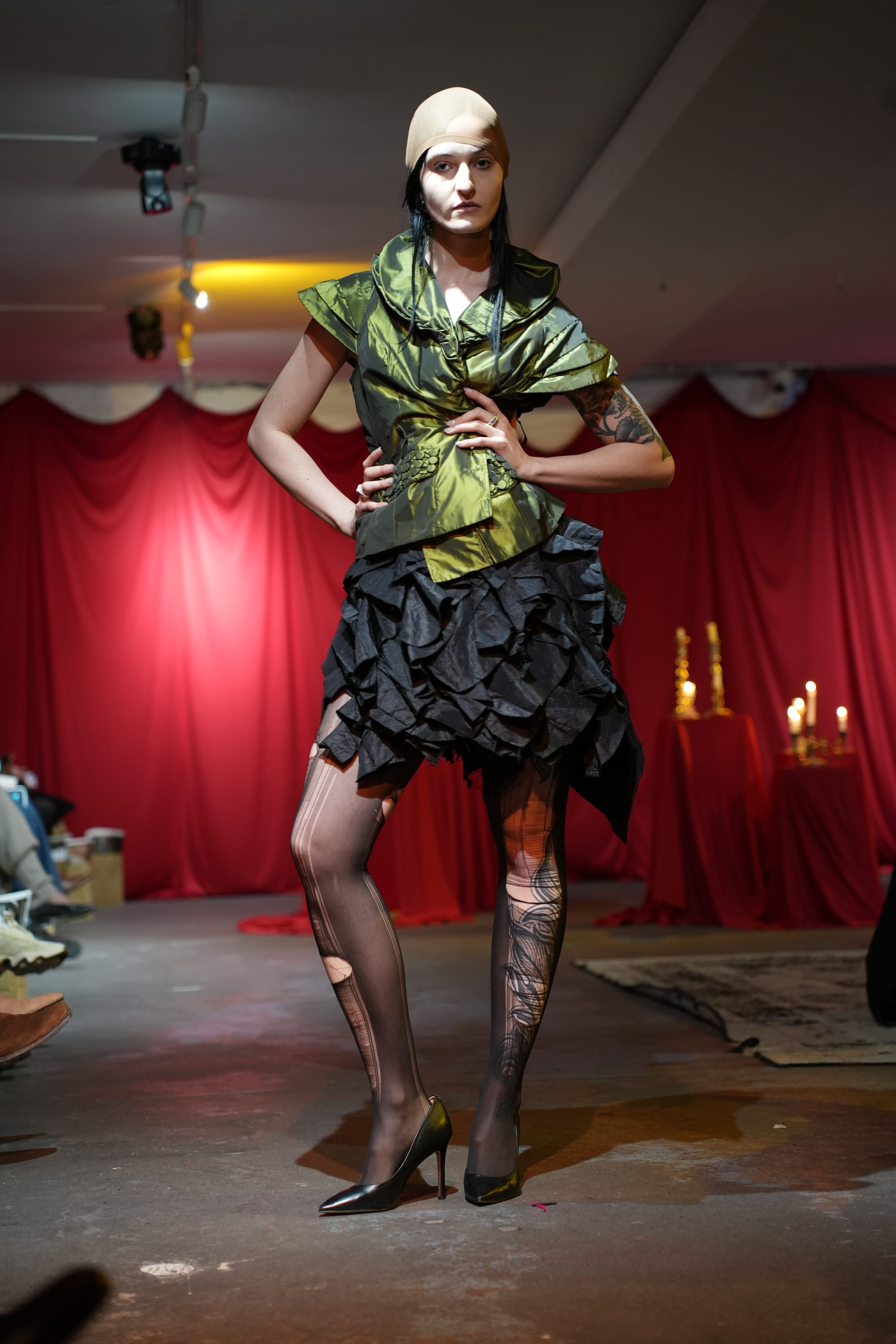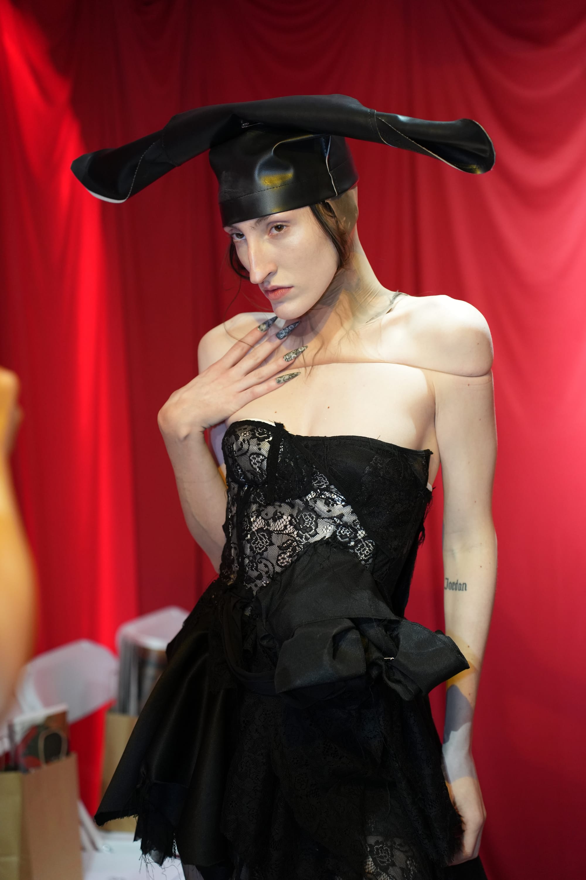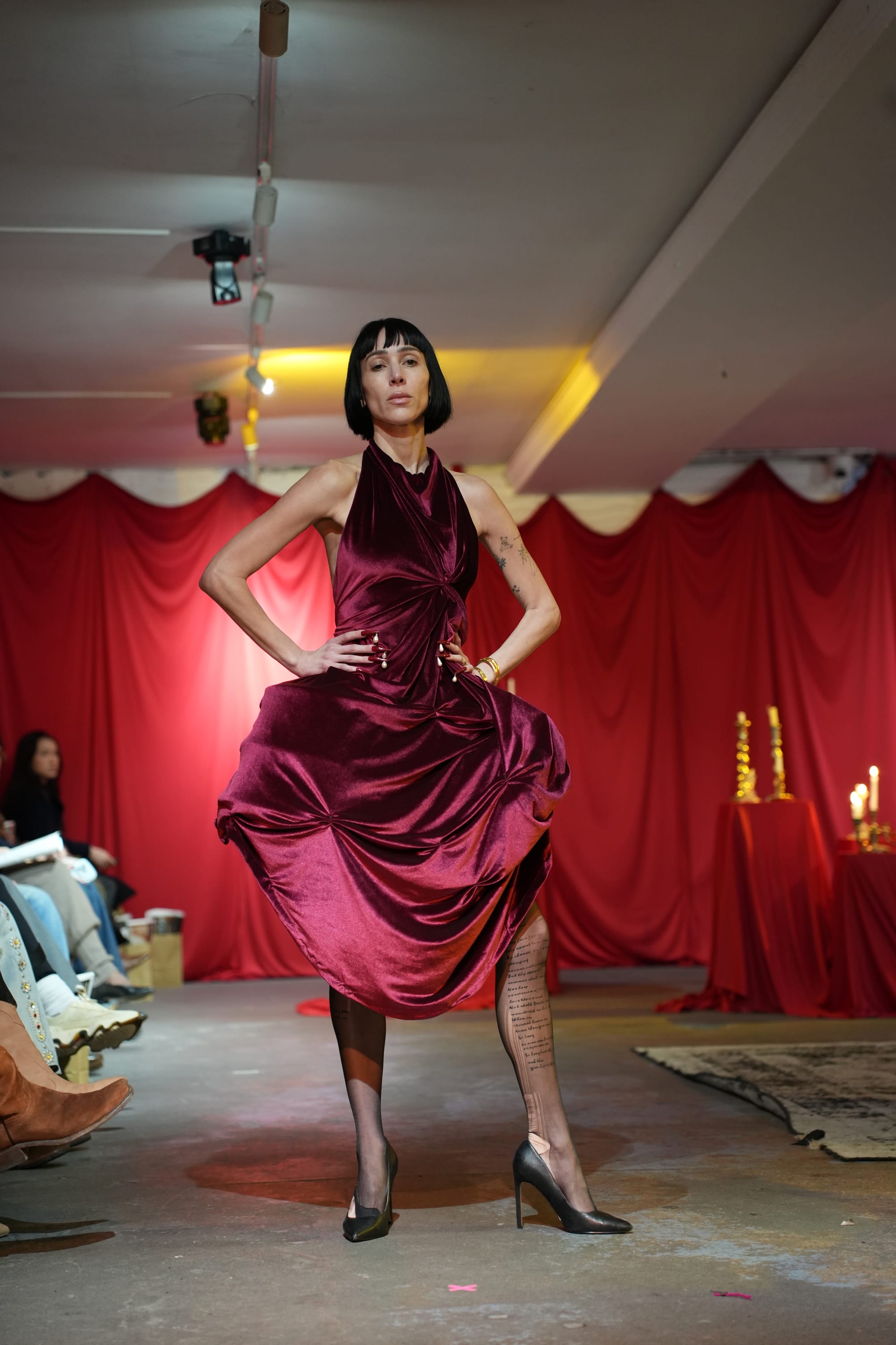 The building looked abandoned from the street. Inside, it felt like a commune of artists in motion, warm and electric. It quickly became clear the evening was not simply a preview of a collection but an introduction to the world Menyelek had already built.