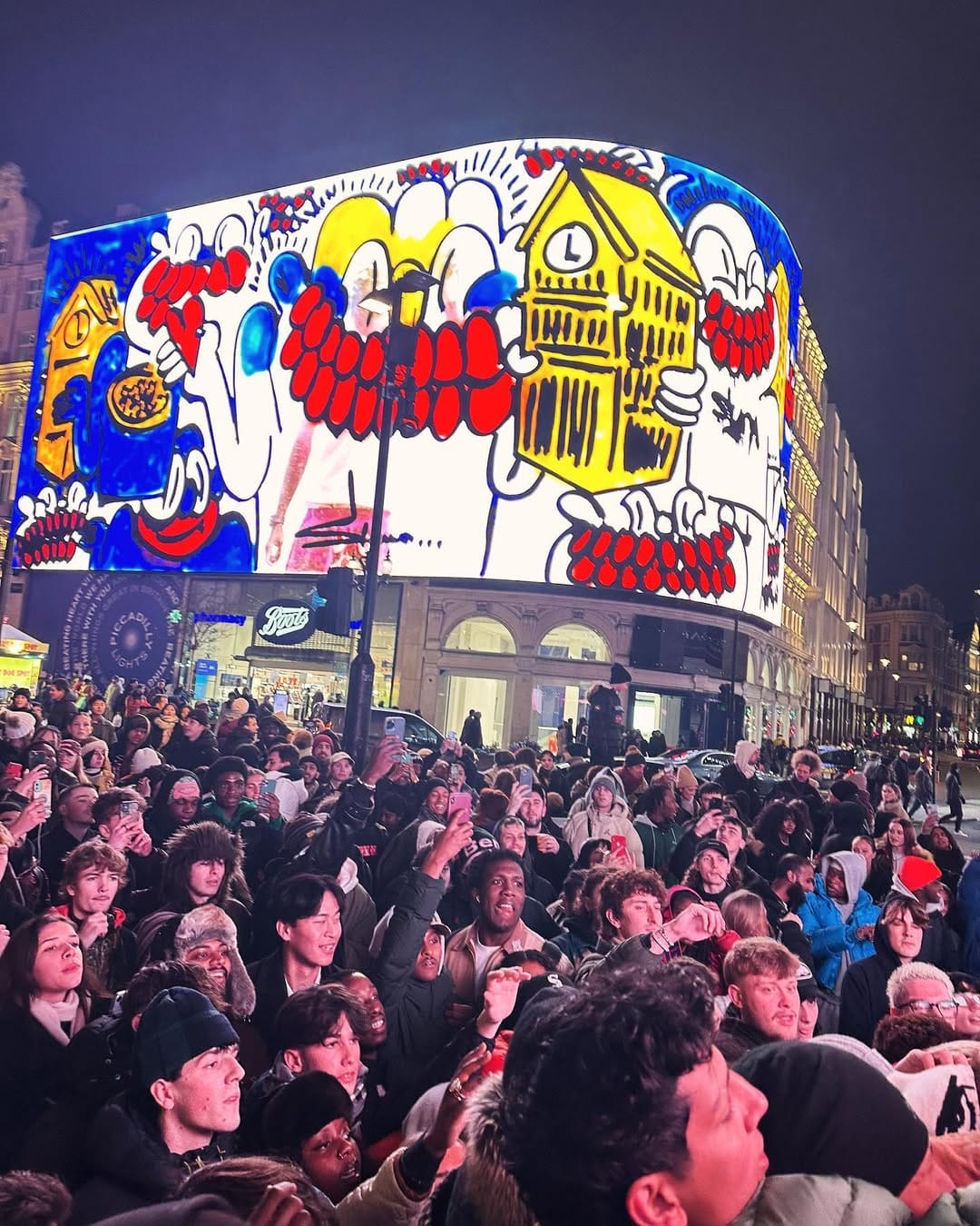 You can’t talk about Slawn without talking about energy. He’s the kind of artist who brings noise wherever he goes. One week he’s painting for the FA, the next he’s fronting Timberland’s ICONIC campaign with Naomi Campbell, teasing a Nike project, or repainting a Bentley. He designed the 2023 BRIT Award trophy, becoming the youngest and first Nigerian-born artist to do it, and still finds time to run BeauBeaus, a café and art space he shares with his partner Tallula. Walk inside and it feels like an extension of his brain: people sketching, playing chess, spilling paint, sharing jollof rice. It isn’t a gallery. It’s an ecosystem.