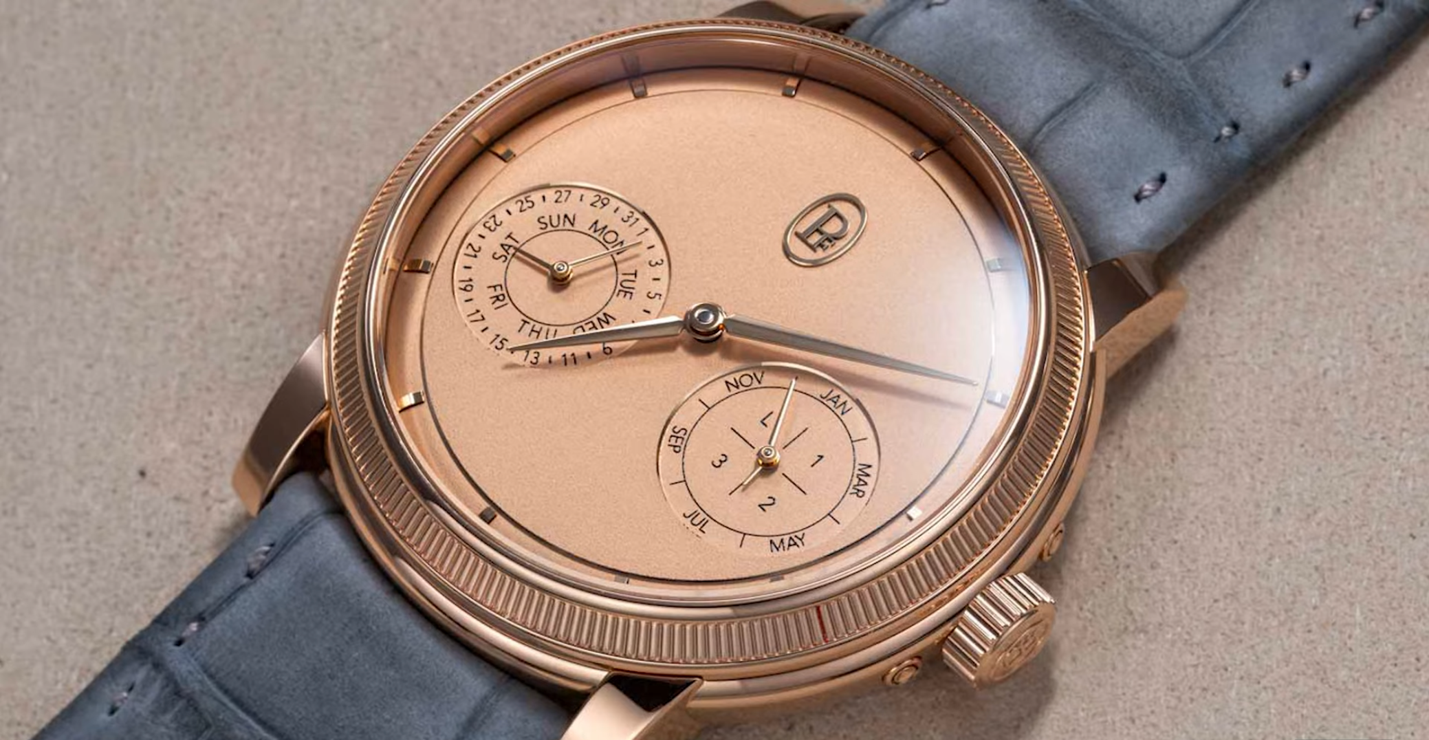 That same thinking shapes every piece Parmigiani makes. The Perpetual Calendar reads like a time-only watch at first glance, its coaxial counters laid out with perfect symmetry.